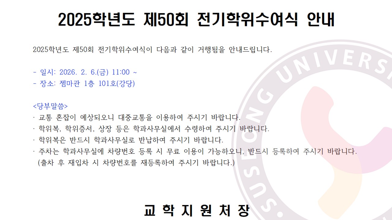 제목 2025학년도 제50회 전기학위수여식 안내
