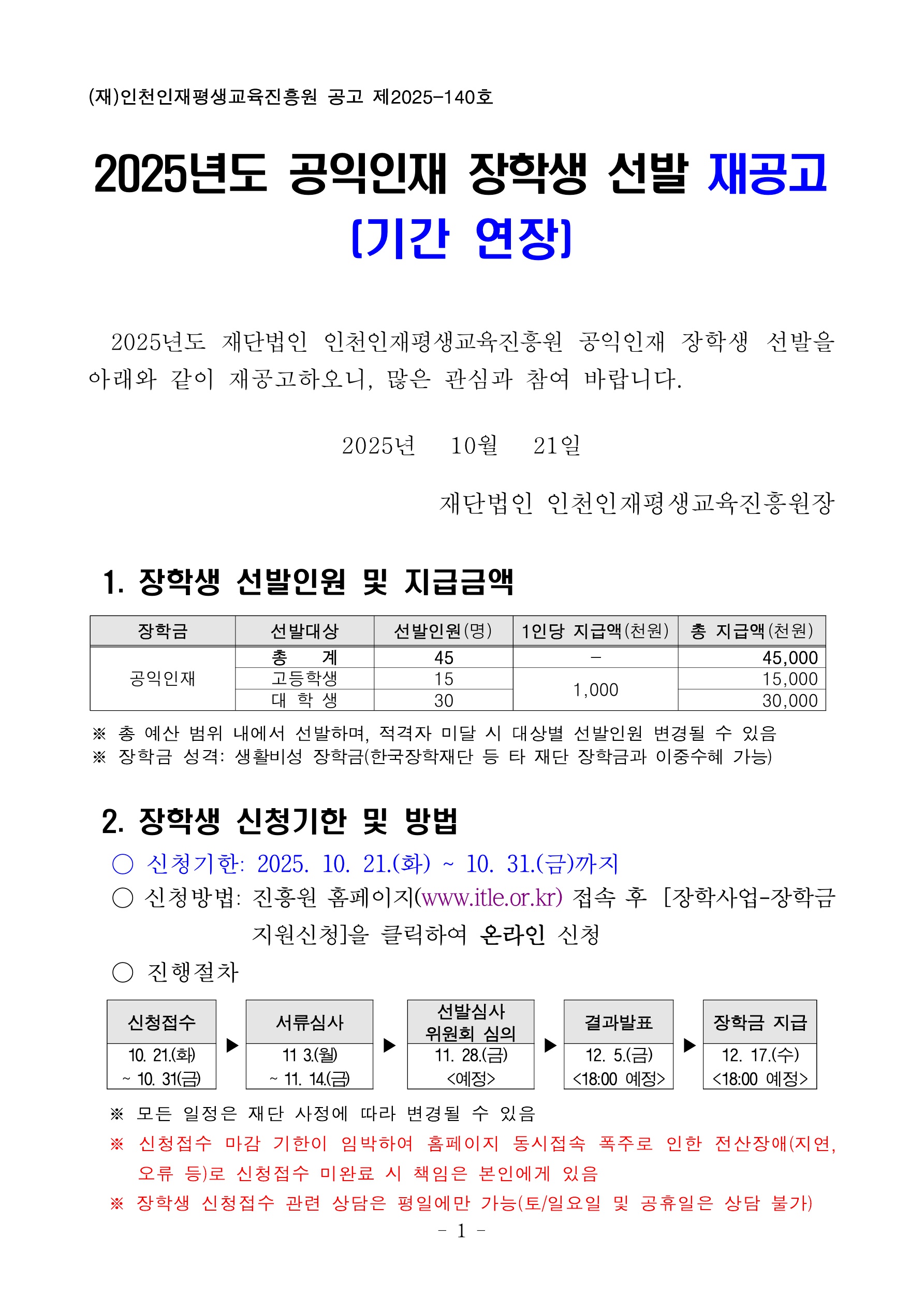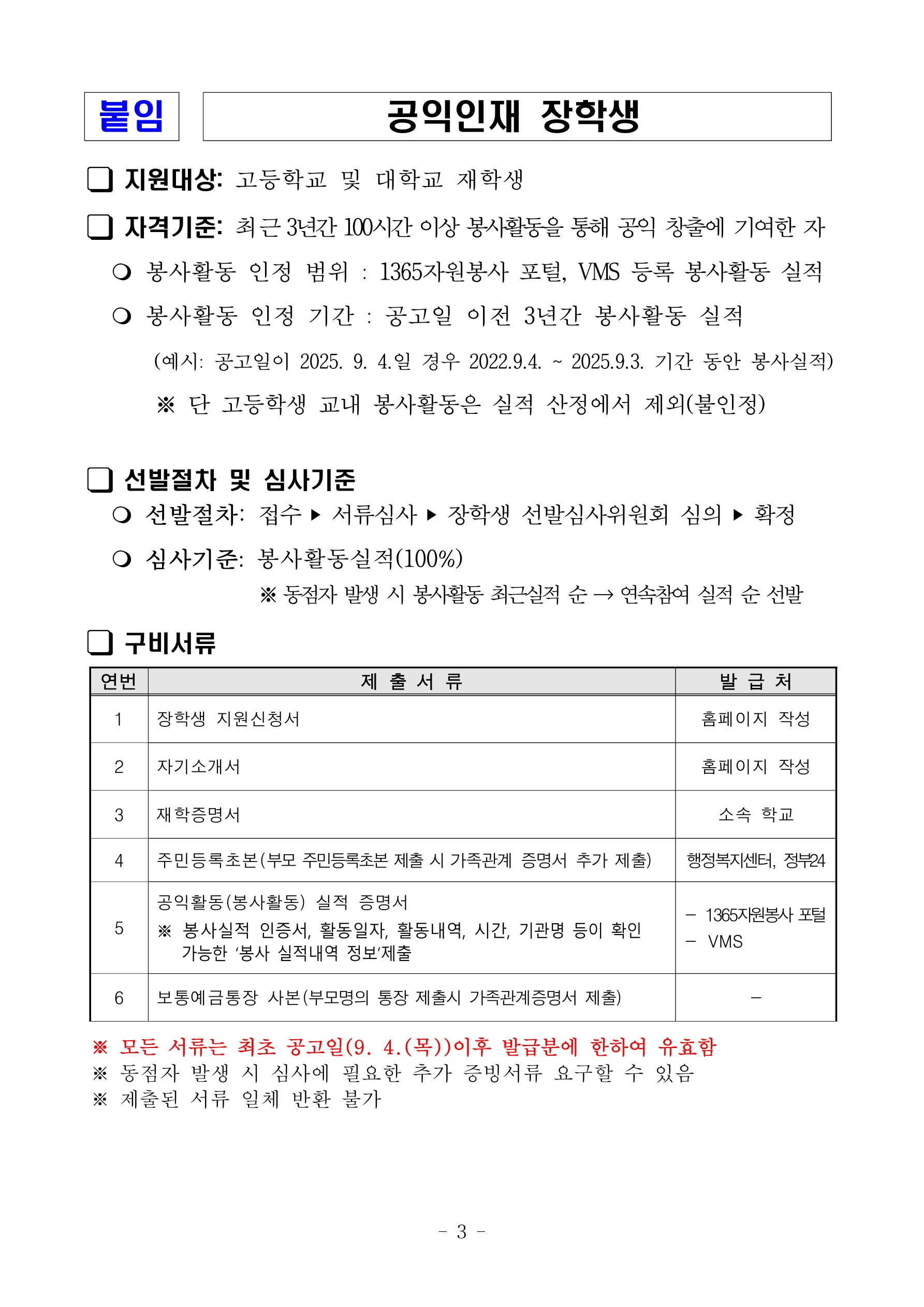 제목 [장학]2025년도 공익인재 장학생 선발 재공고(기간연장)