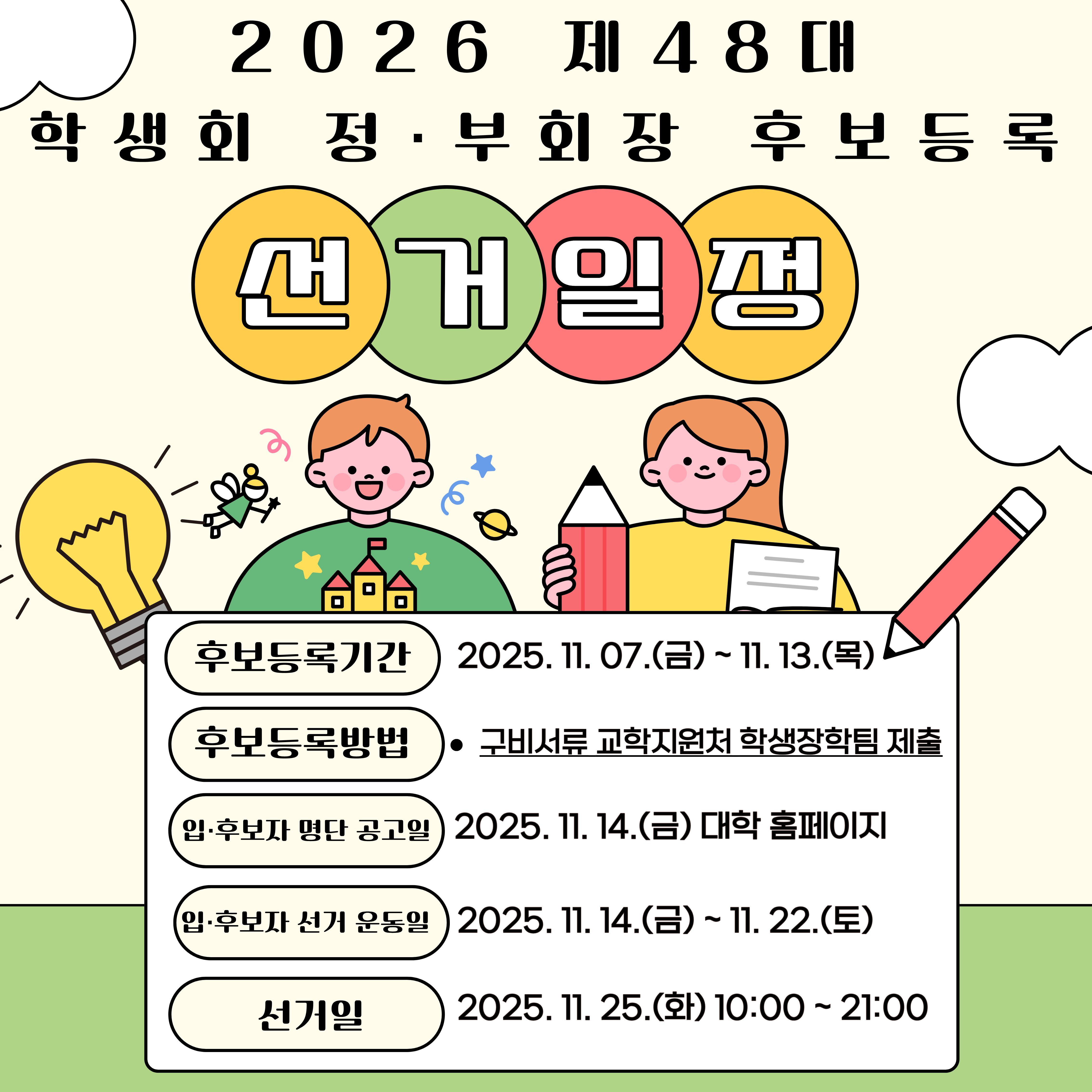 제목 제48대 학생회 정 · 부회장 후보등록 및 선거일정 안내