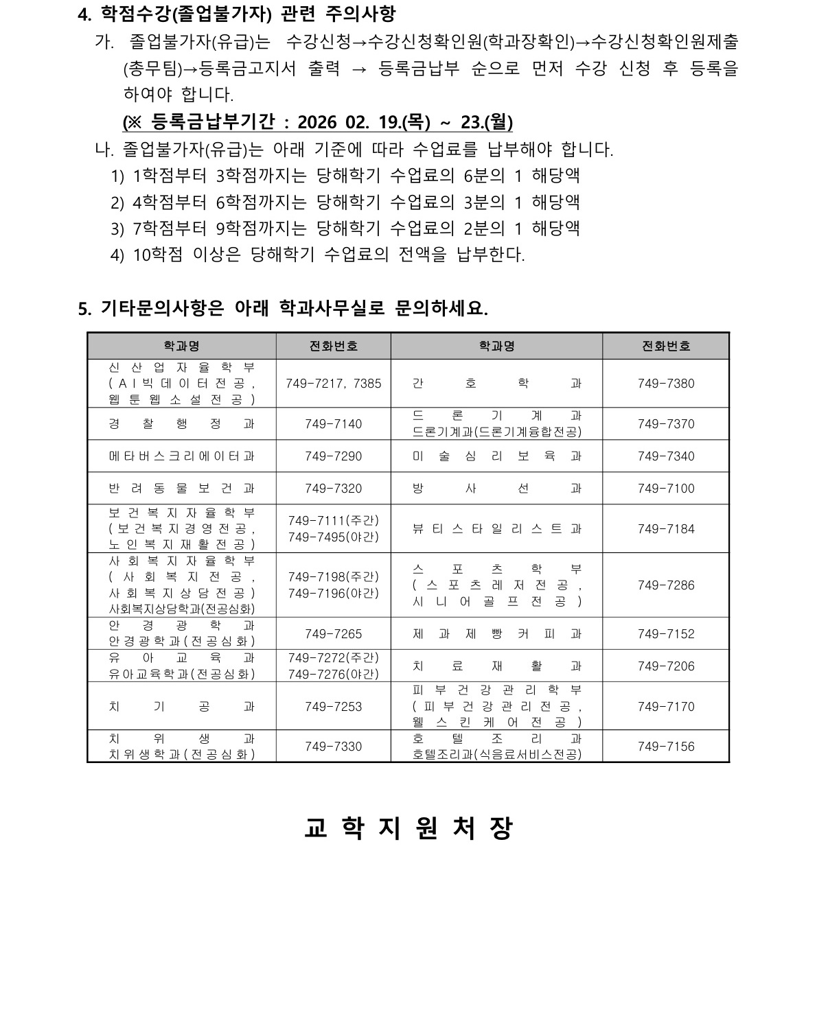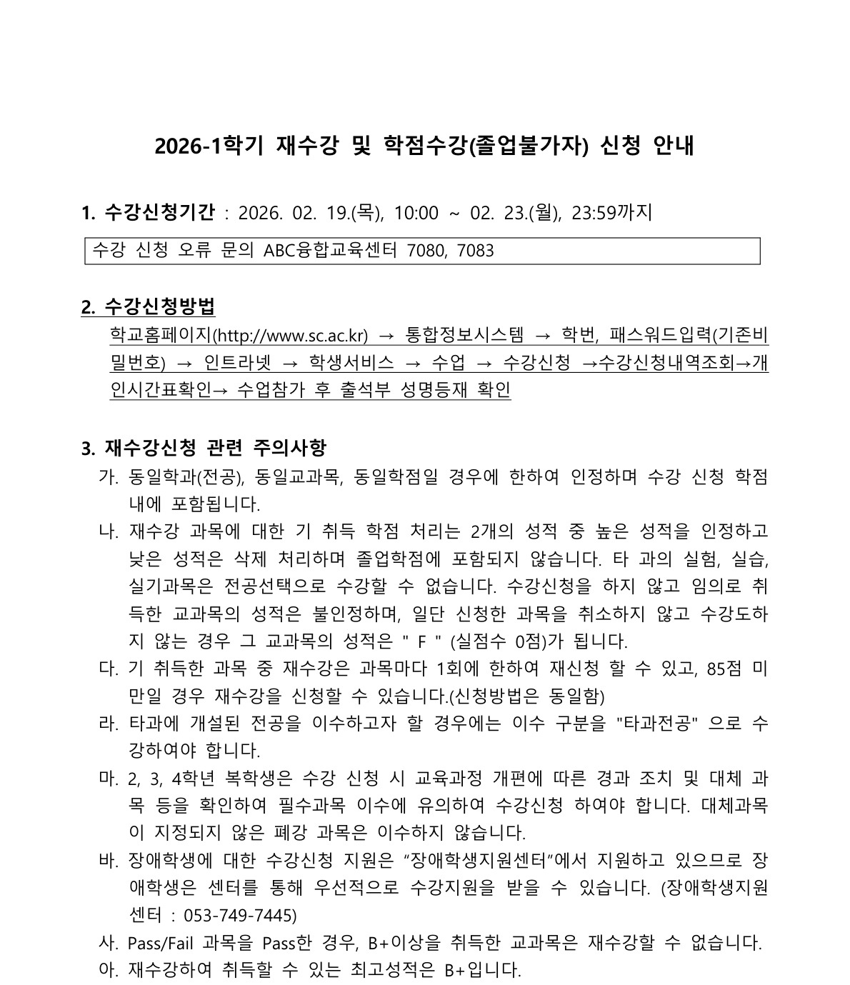 제목 2026-1학기 재수강 및 학점수강(졸업불가자) 신청 안내