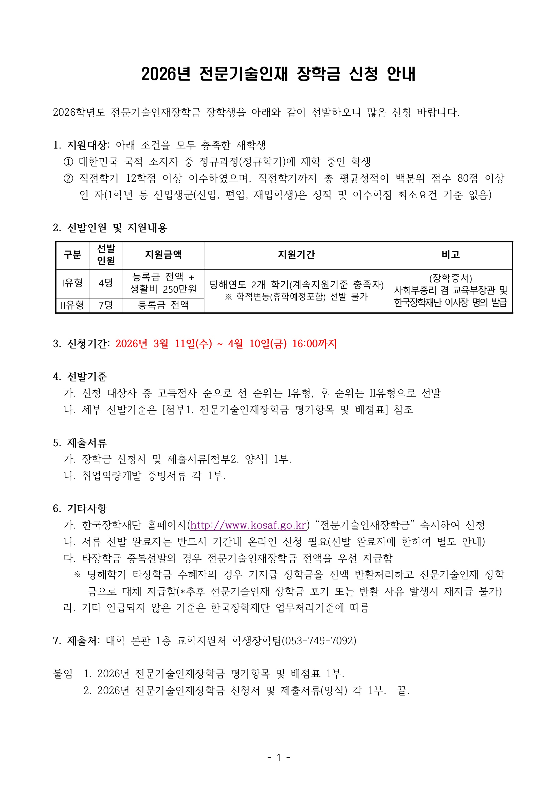 | 제목 | [장학] 2026년 전문기술인재장학금 신청 안내 | ||