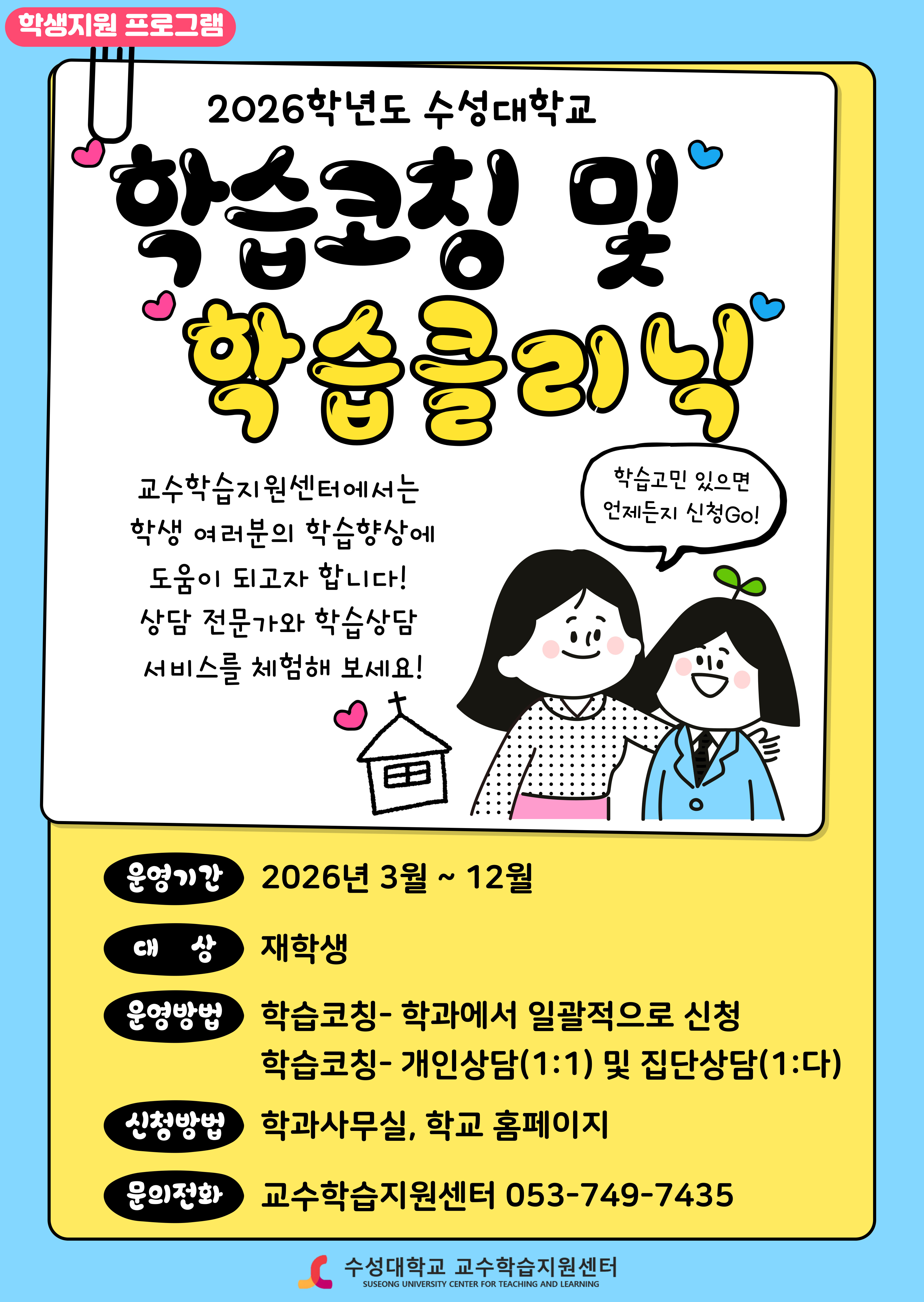 | 제목 | [교수학습지원센터] 2026학년도 학습코칭 및 학습클리닉 안내 | ||
