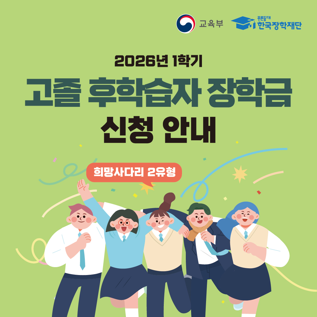 | 제목 | [장학]2026년 1학기 희망사다리II유형(고졸 후학습자 장학금) 신규장학생 신청기간 연장 안내 | ||