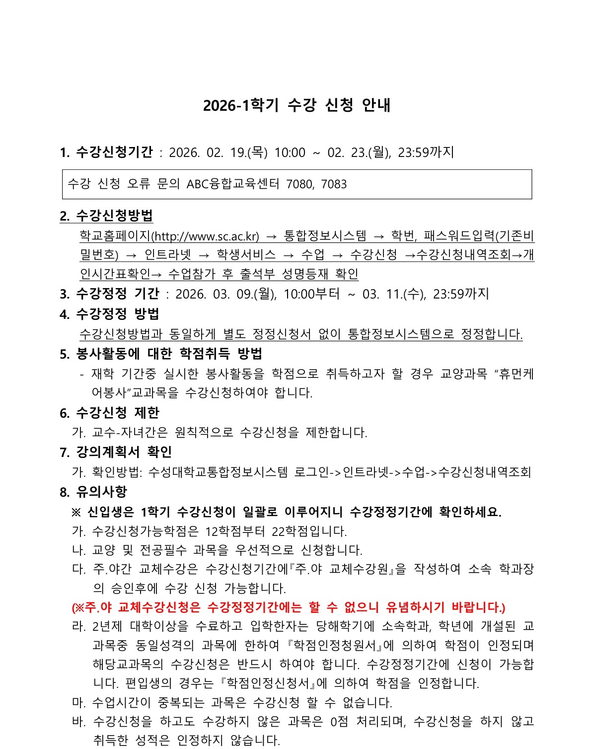 제목 2026-1학기 수강 신청 안내